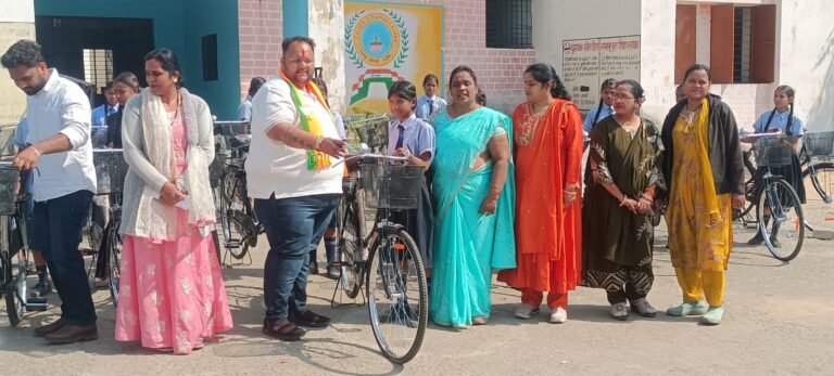 कोरबा। कोरबा के सीतामणी स्थित स्वामी आत्मानंद स्वाहा अ० उ० हि० म० विद्यालय में कक्षा 9वीं की छात्राओं को साइकिल वितरण किया गया। कार्यक्रम के मुख्य अतिथि वैभव शर्मा ने छात्राओं को साइकिलें सौंपीं। इस अवसर पर वैभव शर्मा को भाजयुमो के जिलाध्यक्ष चुने जाने पर शाला परिवार ने बधाई दी। कार्यक्रम में वृक्षारोपण भी किया गया। विद्यालय की व्याख्याताओं, SMOC सदस्यों सदस्य श्रीमती मामांनी भौमिक, श्रीमती सुनीता निर्भलकर, कम तुषार साहू, मनीराम साहू एवं प्रभात मिश्रा अन्य अतिथि उपस्थित रहे ।