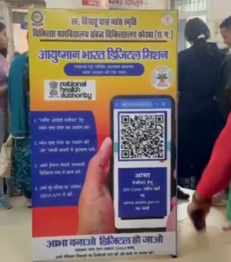 राष्ट्रीय डिजिटल स्वास्थ्य मिशन के अंतर्गत जिले के नागरिकों को डिजिटल स्वास्थ्य सेवाओं से जोड़ने के उद्देश्य से आभा आईडी बनाने के लिए प्रेरित किया जा रहा है, जिससे लोग अपनी स्वास्थ्य संबंधी जानकारी को डिजिटल रूप में सुरक्षित रख सकें। जिले के सभी स्वास्थ्य केंद्रों, उप स्वास्थ्य केंद्रों और सामुदायिक स्वास्थ्य केंद्रों में आभा आईडी बनाने की सुविधा उपलब्ध है। इसके साथ ही स्वास्थ्य कार्यकर्ता महिला-पुरुष और मितानिन द्वारा भी लोगों को आभा ऐप की जानकारी देकर पंजीयन में सहयोग किया जा रहा है।