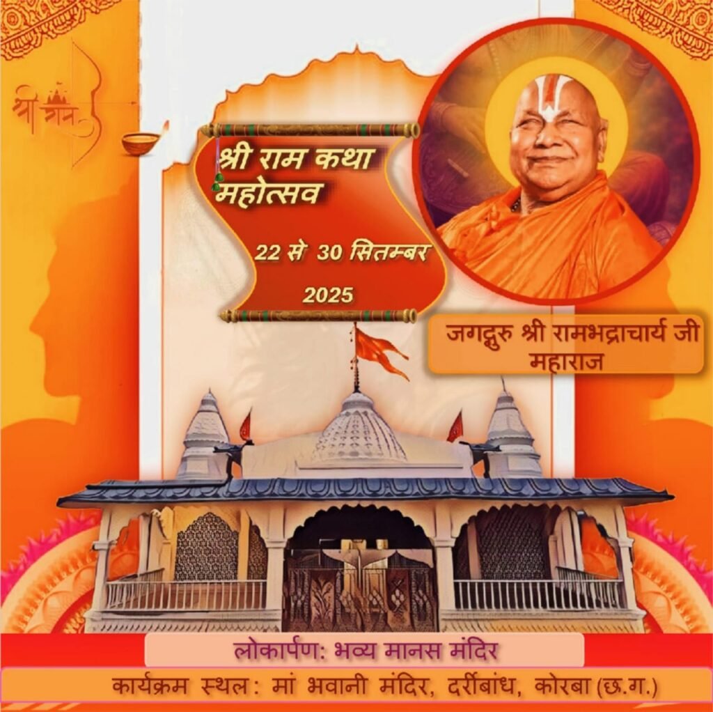 कोरबा में होगा दिव्य श्रीराम कथा महोत्सव, जगतगुरु रामभद्राचार्य करेंगे प्रवचन