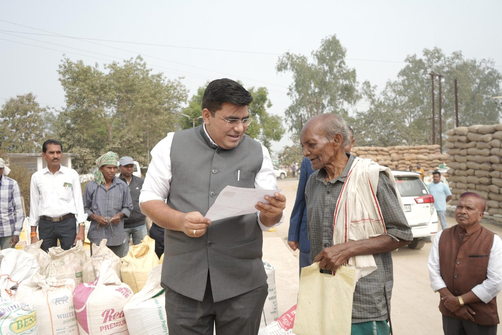 “का हाल हे कका…….. कोई तकलीफ़ तो नहीं? कौन सा धान है, कितना धान है? खरीदी केंद्र में भी 10 हजार रुपये तक निकालने की सुविधा है३ तत्काल आवश्यकता हो तो पैसे निकाल सकते हैं….. कोई समस्या हो तो बताइए।”