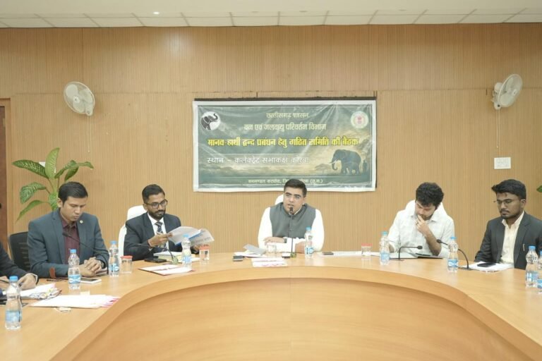 जिले में जंगली हाथियों की सुरक्षा सुनिश्चित करने तथा मानव – हाथी द्वंद को प्रभावी रूप से नियंत्रित करने के उद्देश्य से आज कलेक्टर श्री कुणाल दुदावत की अध्यक्षता में गठित जिला स्तरीय समिति की बैठक कलेक्ट्रेट सभाकक्ष में आयोजित की गई। बैठक में हाथी प्रभावित क्षेत्रों की वर्तमान स्थिति की विस्तृत समीक्षा करते हुए उन्होंने संबंधित विभागों को समन्वित एवं सतत कार्रवाई सुनिश्चित करने के निर्देश दिए।