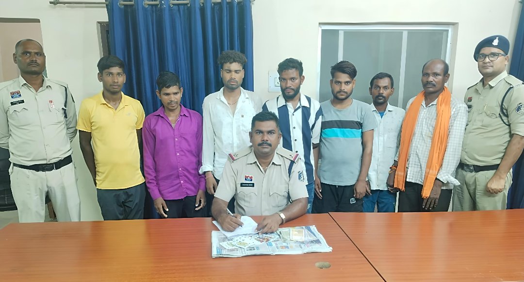 ⏩ पुलिस अधीक्षक जांजगीर चांपा विजय कुमार पाण्डेय (IPS) के निर्देशन में जिले में जुआ/सट्टा खेलाने एवं खेलने वालों के विरुद्ध लगातार कार्रवाई की जा रही है। इसी कड़ी में अतिरिक्त पुलिस अधीक्षक उमेश कुमार कश्यप के कुशल मार्गदर्शन पर क्षेत्र में शांति और सुरक्षा बनाए रखने के लिए जांजगीर पुलिस द्वारा सख्त कदम उठाए जा रहे हैं। इसी क्रम में निरीक्षक भास्कर शर्मा थाना प्रभारी नवागढ़ के नेतृत्व में मुखबिर सूचना पर ASI राजेंद्र सिंह क्षत्रिय टीम के साथ ग्राम कोटमीसोनार के अटल चौक तलाब के पास रेड कार्यवाही कर 07 जुवाड़ीयानो को जुआ खेलते पकड़ा जाकर विधिवत गिरफ्तार कर आरोपियों के विरुद्ध छ.ग. जुआ प्रतिषेध अधिनियम 2022 की धारा 3 (2) के तहत कार्यवाही किया गया।