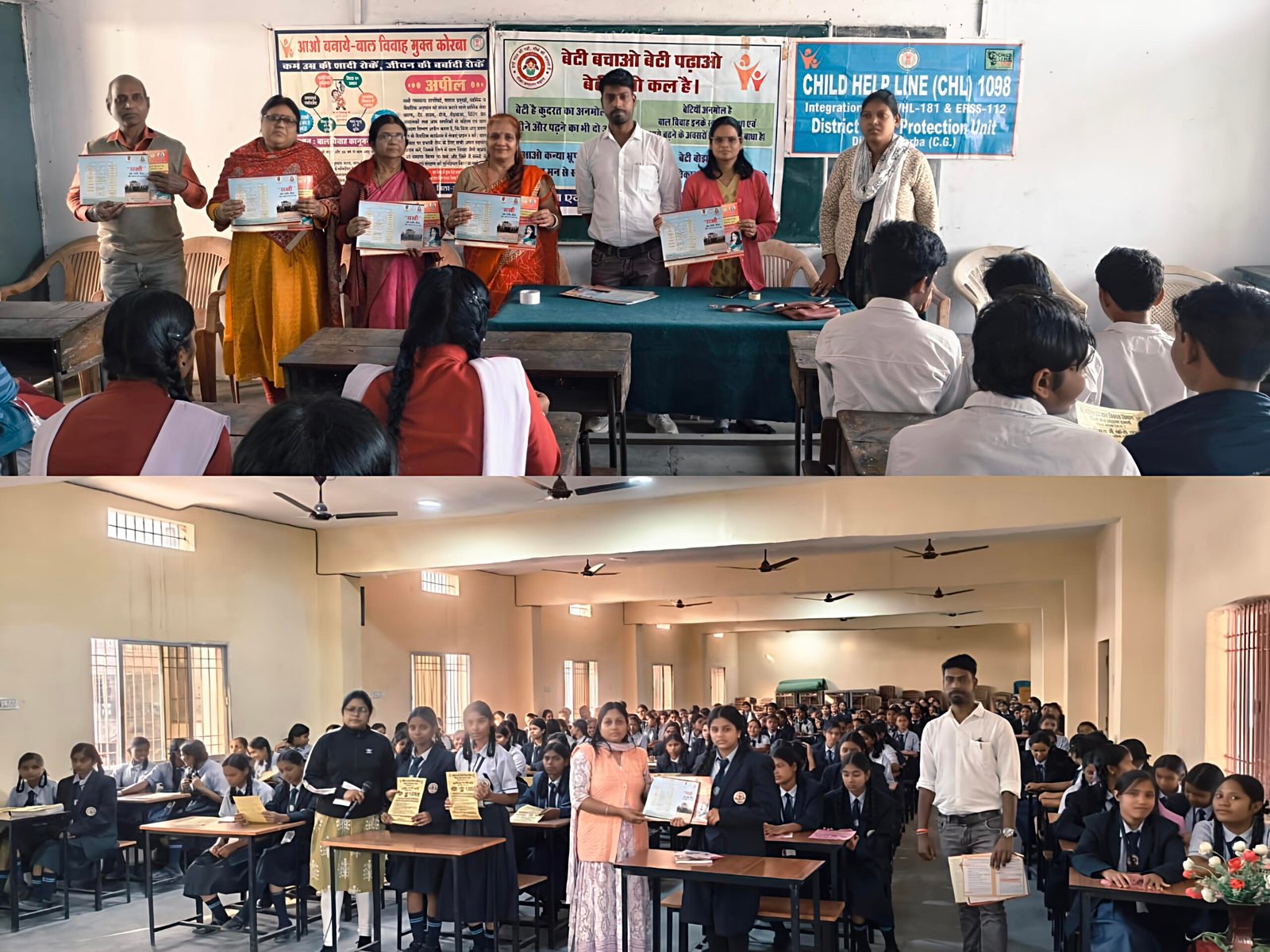 अंत में, सभी छात्राओं, स्कूल के प्राचार्य, शिक्षकों एवं शिक्षिकाओं की उपस्थिति में बेटी बचाओ बेटी पढ़ाओ और बाल विवाह मुक्त भारत की शपथ दिलाई गई। इस दौरान जिला कार्यक्रम अधिकारी श्री बसंत मिंज एवं जिला महिला एवं बाल विकास अधिकारी श्री गजेंद्र देव सिंह, जिला मिशन समन्वयक रत्ना नामदेव, जेंडर विशेषज्ञ तुलेश्वर दुबे, कीर्तन प्रसाद एवं चाइल्ड लाइन टीम के सदस्य उपस्थित थे।