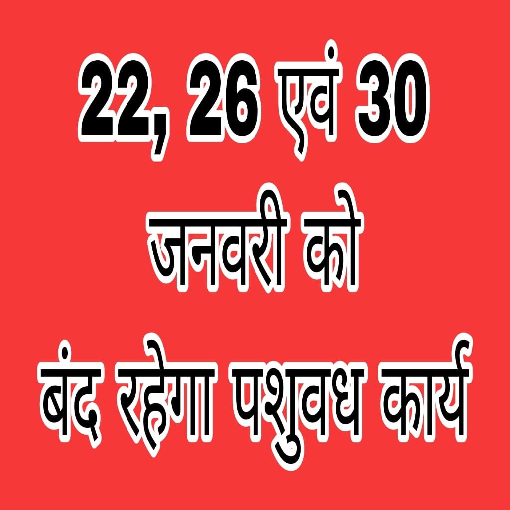 22, 26 एवं 30 जनवरी को बंद रहेगा पशुवध कार्य