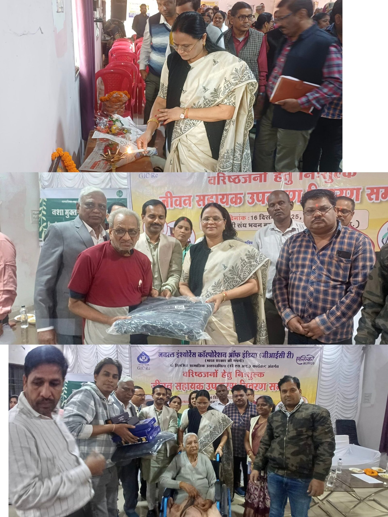 कोरबा 16 दिसंबर 2025. मैत्री संघ भवन, बालको नगर में जनरल इंश्योरेंस कॉरपोरेशन ऑफ इंडिया के नियमित सामाजिक उत्तरदायित्व (CSR) कार्यक्रम के अंतर्गत वरिष्ठ जनों के लिए निःशुल्क जीवन सहायक उपकरण वितरण समारोह का भव्य आयोजन किया गया।