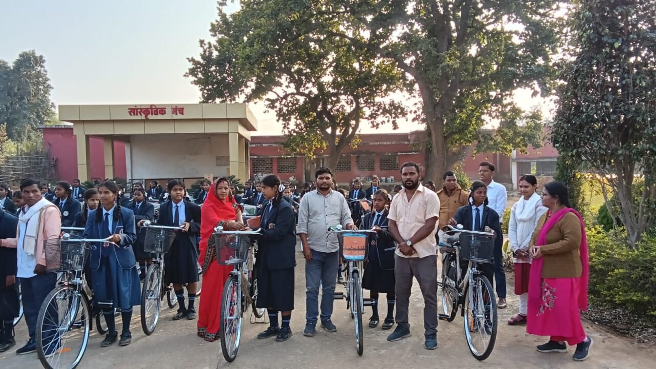 कुदमुरा आत्मानंद विद्यालय में 79 छात्राओं को जनप्रतिनिधियों ने वितरित की साइकिलें