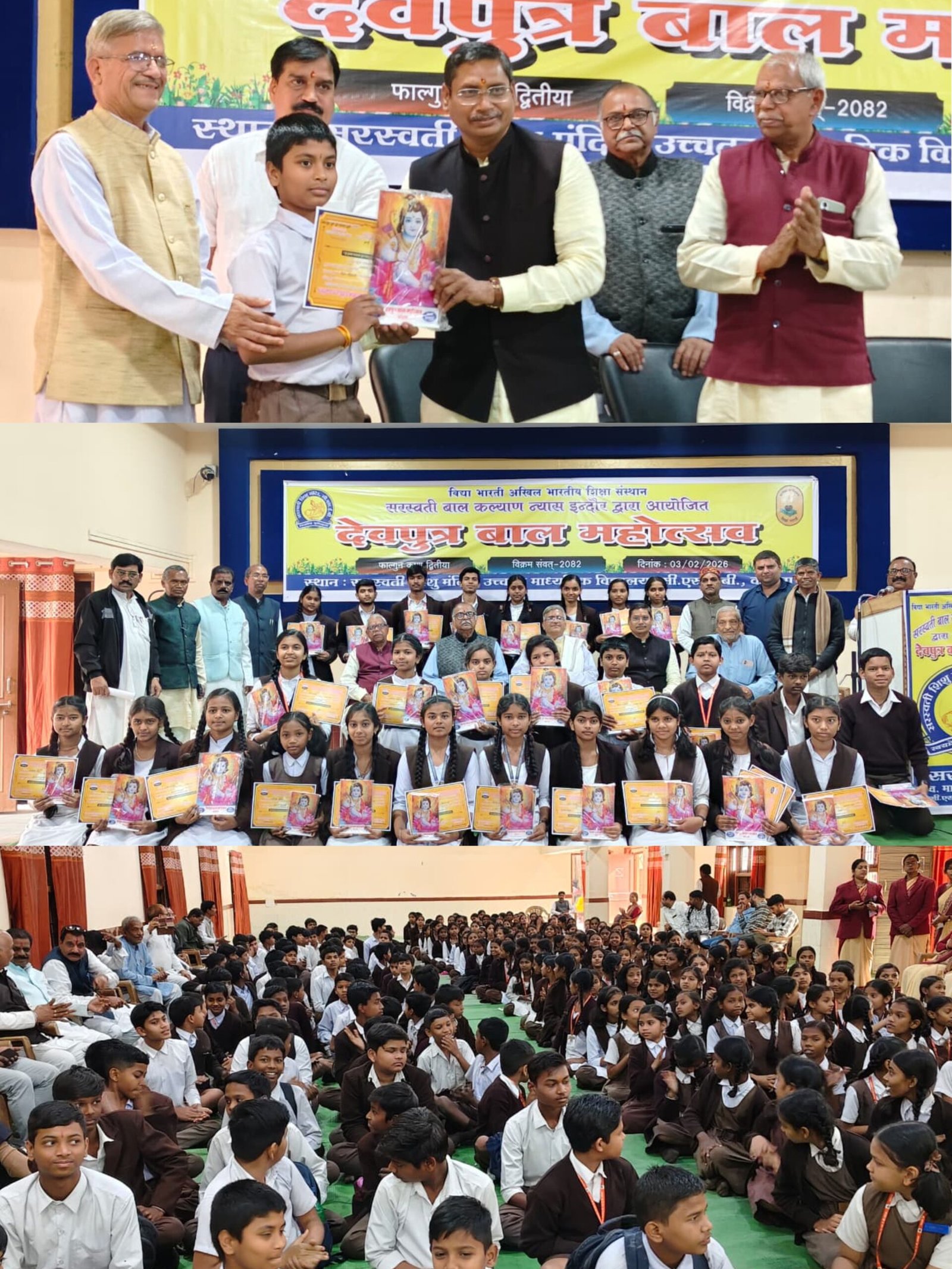 कोरबा। विद्याभारती अखिल भारतीय शिक्षा संस्थान से संबंद्ध सरस्वती शिक्षा संस्थान छत्तीसगढ़ रायपुर के अन्तर्गत सरस्वती बाल कल्याण न्यास इन्दौर म.प्र. के तत्वावधान में देवपुत्र बाल महोत्सव सरस्वती शिशु मंदिर उच्च माध्य. विद्यालय, सी.एस.ई.बी. कोरबा में आयोजित किया गया। कार्यक्रम का समापन समारोह गरिमामय वातावरण में सम्पन्न हुआ।