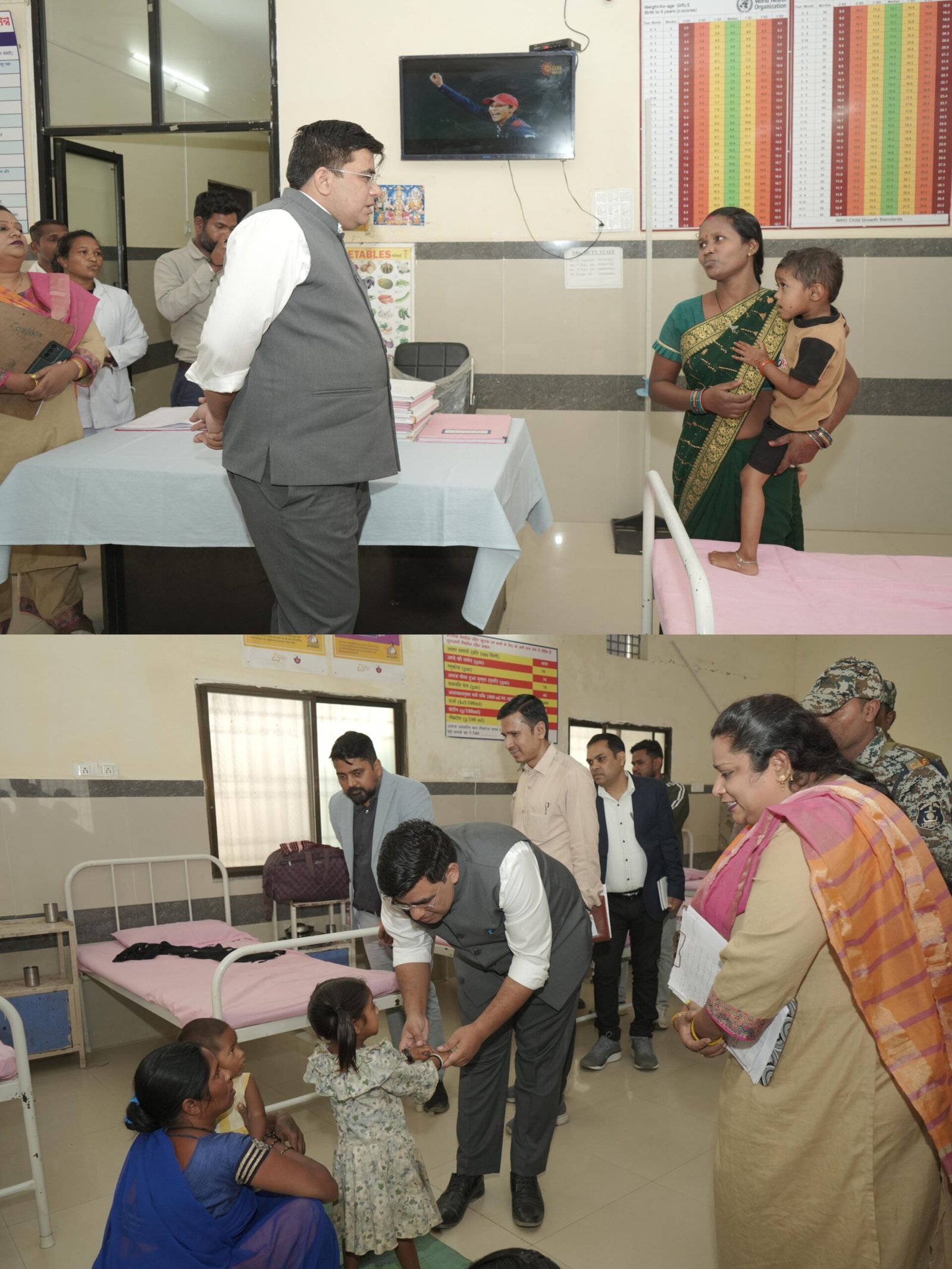 “क्या नाम है बेटा? खाना ठीक लग रहा है न? आप बच्चे की माँ हैं….. यहाँ कोई समस्या तो नहीं? यहाँ 15 दिन तक आपके बच्चे को पोषण आहार मिलेगा। इसके बाद जब आप घर जाएँगी, तब भी बच्चे को पोषणयुक्त भोजन अवश्य देना। छह माह से छह वर्ष तक के बच्चों के शारीरिक और मानसिक विकास के लिए संतुलित खानपान बहुत जरूरी है। आप नियमित ध्यान रखेंगी तो वजन और लंबाई दोनों बढ़ेंगे। यदि कोई समस्या आए तो तुरंत अस्पताल लेकर आइए।”इन आत्मीय शब्दों के साथ कलेक्टर श्री कुणाल दुदावत ने पाली स्थित पोषण पुनर्वास केंद्र (एनआरसी) में भर्ती बच्चों की जानकारी माताओं से ली और बच्चों की देखभाल पर विशेष ध्यान देने की सलाह दी।
