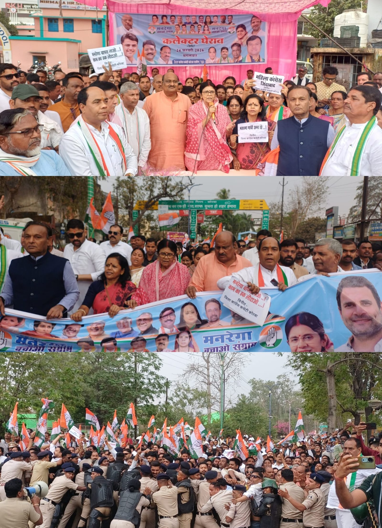 केन्द्र सरकार द्वारा महात्मा गांधी राष्ट्रीय ग्रामीण रोजगार गारंटी अधिनियम का नाम बदलकर व्ही बी जी राम जी किये जाने के विरोध में कांग्रेस ने देशव्यापी आंदोलन मनरेगा बचाओ अभियान चलाया है जिसके तहत् आज कोरबा जिला शहर एवं ग्रामीण कांग्रेस कमेटी के द्वारा प्रदर्शन किया गया ।