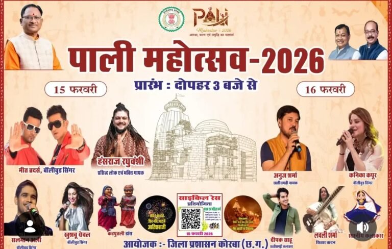 महाशिवरात्रि के पावन अवसर पर पाली महोत्सव 2026 का आयोजन 15 एवं 16 फरवरी को ग्राम पंचायत केराझरिया स्थित पाली महोत्सव मैदान में किया जाएगा। जिला प्रशासन ने आयोजन की सभी तैयारियां पूर्ण कर ली हैं। दो दिवसीय यह महोत्सव धार्मिक आस्था, सांस्कृतिक विरासत और आधुनिक संगीत का भव्य संगम प्रस्तुत करेगा।