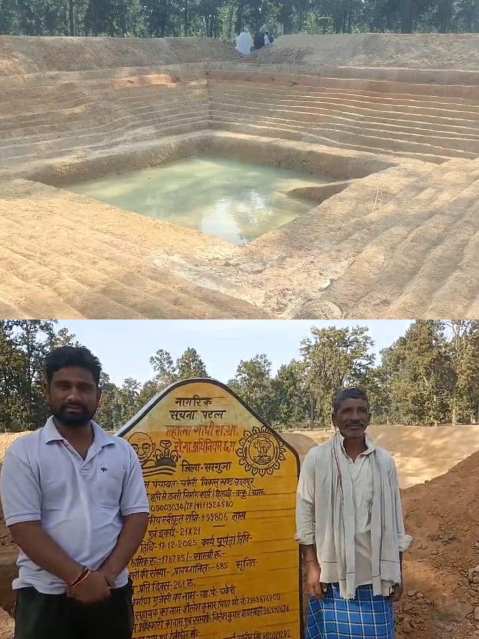 ग्रामीण क्षेत्रों में आजीविका के साधनों को सुदृढ़ करने तथा किसानों को आत्मनिर्भर बनाने के उद्देश्य से विकसित भारत गारंटी फॉर रोजगार एण्ड आजीविका मिशन (ग्रामीण) (वीबी जी राम जी) के अंतर्गत सरगुजा जिले में विभिन्न हितग्राही मूलक कार्य कराए जा रहे हैं। इसी कड़ी में जनपद पंचायत उदयपुर अंतर्गत ग्राम पंचायत चकेरी में हितग्राही श्री ननकू के खेत में आजीविका डबरी निर्माण कार्य स्वीकृत किया गया है।